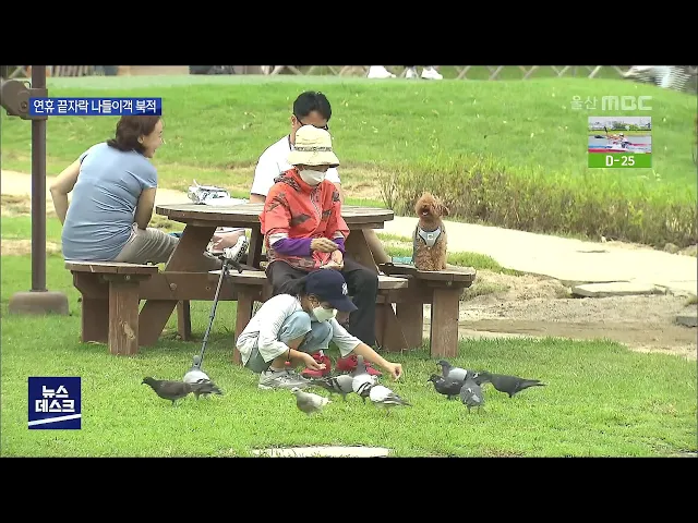 [앵커] 추석 연휴 마지막 날인 오늘(9/12) 울산 대표 관광지 곳곳에는 가족단위 방문객들이 모여들었습니다. 태화강 국가정원도 연휴 끝자락 휴식을 즐기려는 시민들로 북적였습니다. 정인곤 기자가 보도합니다. [리포트] 장생포 고래문화마을에 관광객들이 가득합니다. 엄마들이 직접 제기차기에 나서자 아이들의 웃음소리...
