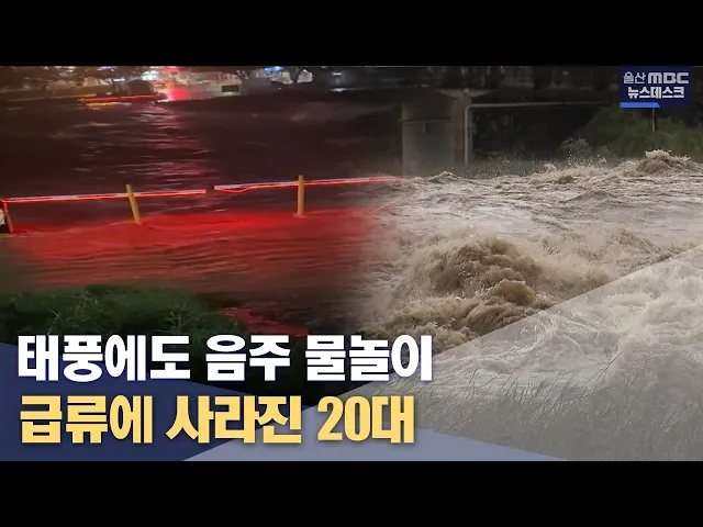 [앵커] 울산에서는 태풍 예보에도 술을 마시고 물이 불어난 하천에서 놀던 20대 한 명이 실종됐습니다. 친구들의 만류에도 좀 더 깊은 곳으로 들어가려다 순식간에 급류에 휘말린 것으로 보입니다. 이돈욱 기자입니다. [리포트] 사고가 난 건 오늘 새벽 1시쯤. 20대 남성 6명이 물이 불어난 하천에서 놀다가 일행 가운데 한...