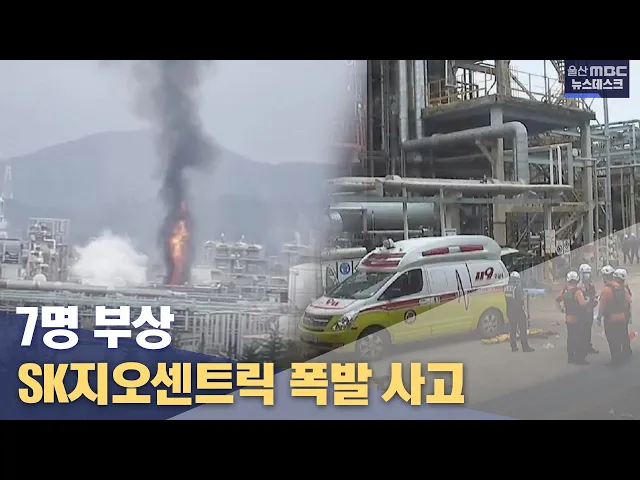 [앵커]오늘(8/31) 오후 울산 남구 SK지오센트릭 폴리머 공장에서 폭발사고가 발생했습니다. 이 사고로 현재까지 7명이 화상을 입은 것으로 확인됐는데 이들 중에는 상태가 위중한 부상자도 있는 것으로 알려졌습니다. 이용주 기자입니다.[리포트]검은 연기와 함께 시뻘건 불기둥이 치솟아 오릅니다. 오늘 오후 3시 40분 쯤 ...