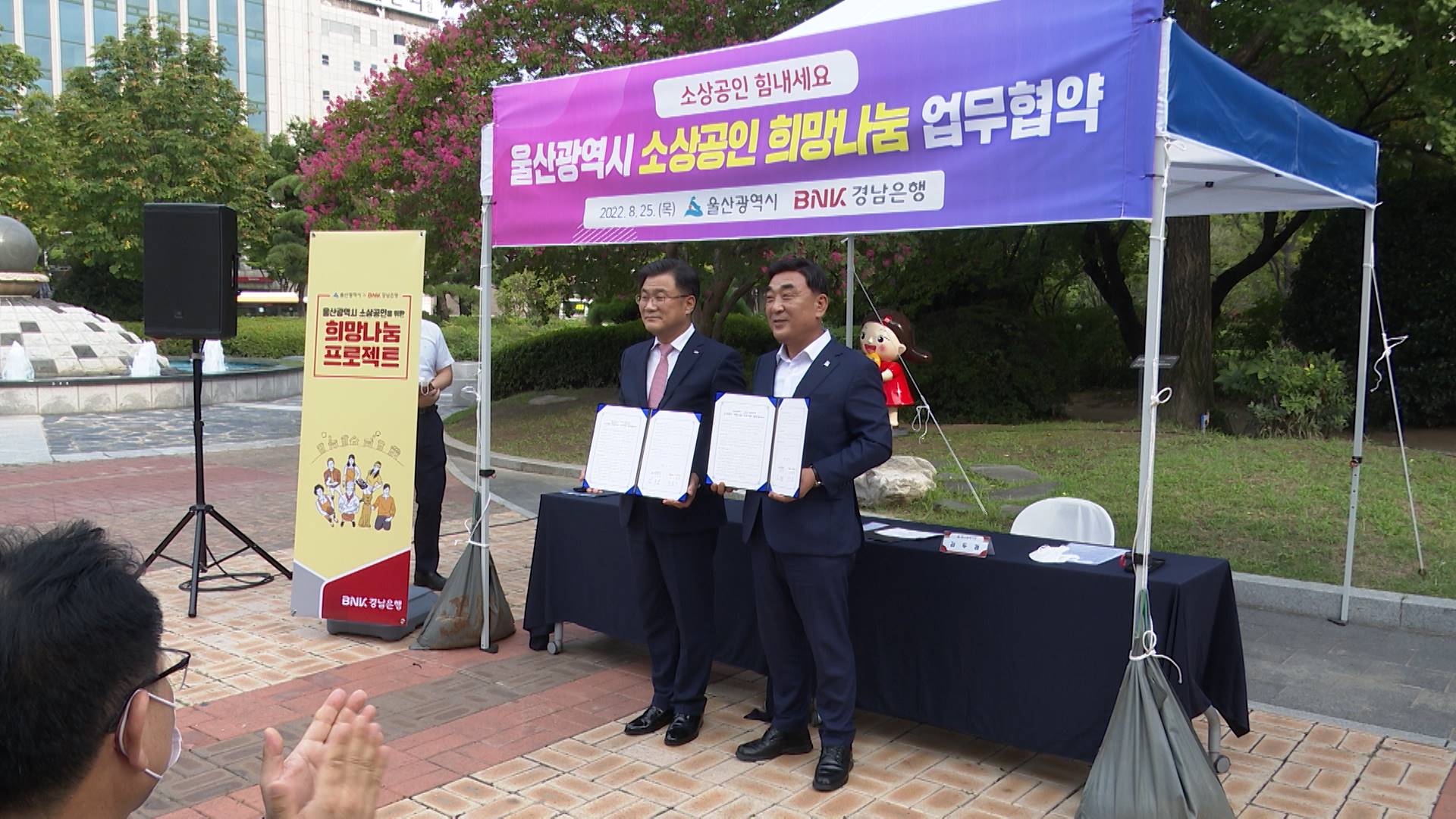 울산시는 어제(8/25) BNK경남은행과 추석을 앞두고 자금난을 겪는 소상공인을 지원하는 업무 협약을 맺었습니다. 해당 자금은 50억원 규모로, 연 소득 3천500만원 이하 소상공인이면 신용등급에 상관없이 1천만원 한도로 무담보·무보증 자금을 지원받을 수 있습니다.