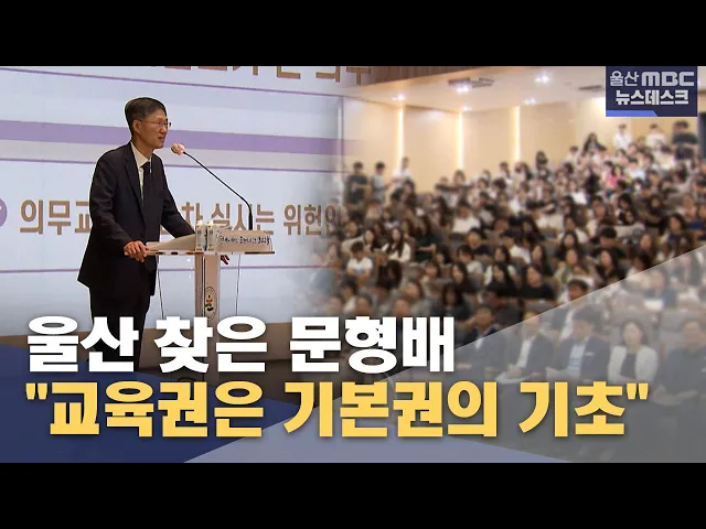 [앵 커] 문형배 전 헌법재판소장 권한대행이 울산교육청의 초청으로 교직원 대상 특강을 진행했습니다. 문 전 대행은 교육권은 기본권 중 가장 기초가 되는 기본권이라며, 헌법적 관점에서 교육의 중요성을 강조했습니다. 정인곤 기자 [리포트] 문형배 전 헌법재판소장 권한대행이 울산교육청 초청 특강을 위해 울산을 찾았...