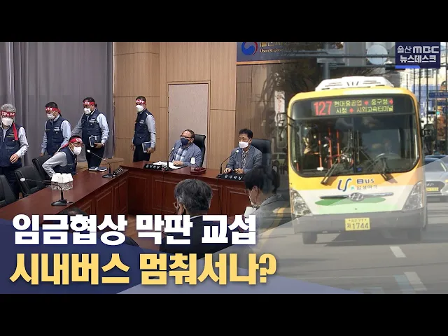 울산 시내버스 노사가 임금협상 난항 끝에 오늘(7/27) 울산지방노동위원회에서 마지막 조율을 진행하고 있습니다. 노조는 임금 7%인상을 요구하고 있지만 사측은 3% 수준의 인상안을 제시하며 입장차를 보이고 있습니다. 지난 20일 전체 조합원 투표에서 95%의 파업 찬성을 받아낸 시내버스 노조는 협상이 결렬될 경우 내일...