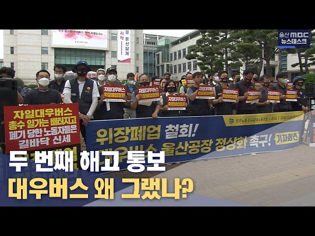 [앵커] 정리해고 사태를 극복하고 지난해 다시 웃으며 출근했던 자일대우버스 직원들이 1년 만에 두 번째 해고 통보를 받았습니다. 회사측이 경영악화를 이유로 폐업 수순에 들어간건데, 노동자들은 위장폐업이라며 반발하고 있습니다. 이돈욱 기자입니다.[리포트] 지난해 6월 통근 버스에서 내려 환하게 웃으며 출근하는 ...
