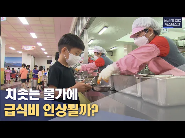 [앵커] 치솟는 물가에 식자재 값이 크게 오르면서 학교 영양사들이 정해진 예산에 맞춰 식단을 짜느라 애를 먹고 있습니다. 울산시교육청은 2학기에는 급식비를 학생 1인당 200원 정도 더 지원하기로 했는데 지자체와 분담금 협상이 과제로 남아있습니다. 홍상순 기잡니다. [리포트] 울산의 한 초등학교. 지난해에 비해 식...