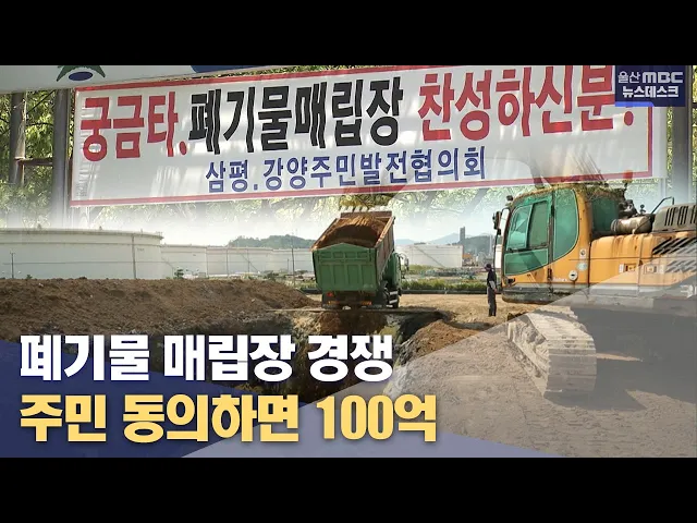 [앵커] 울산의 사업장페기물 처리 용량이 한계에 다다르면서 새로운 매립장 허가를 위한 업체들의 경쟁이 치열합니다. 어떤 한 업체는 주민 동의를 받아내기 위해 100억 원까지도 내놓겠다고 제안하는 등 주민 갈등을 부추기고 있습니다. 이돈욱 기자입니다.[리포트] 울주군 온산읍에 폐기물 매립장을 추진 중인 한 업체가 ...