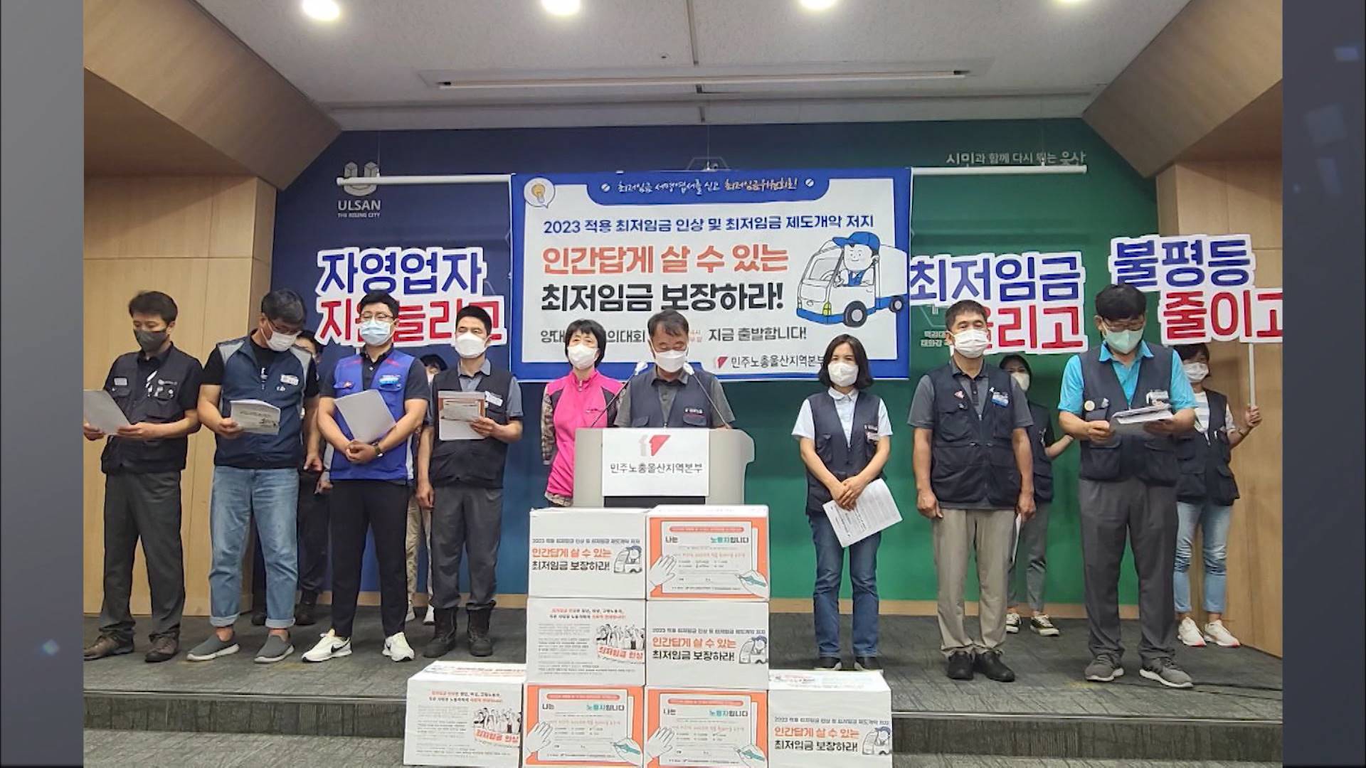민주노총 울산지역본부가 오늘(6/28) 울산시청에서 기자회견을 열고 최저임금을 대폭 인상해 적정임금을 보장해야 한다고 주장했습니다. 민주노총은 지난 3일부터 21일까지 울산시민 1만 6천명을 상대로 적정 최저임금이 얼마인지 물어본 결과 시급 1만3000원이 35.8%의 지지를 받아 가장 높은 응답률을 보였다고 밝혔습니...