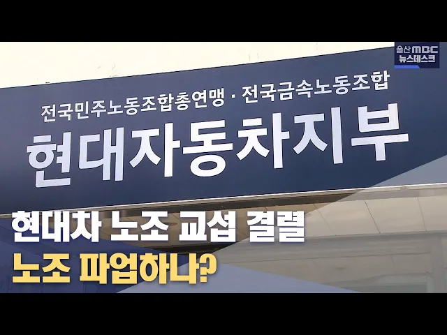 [앵커] 현대자동차 노사가 진행하던 임금협상이 결렬되면서 노조가 4년 만에 파업에 돌입할지 지역사회가 촉각을 세우고 있습니다. 노조는 회사에 미래차 국내공장 신설 투자에 대한 구체적인 계획과 정년 연장 등을 요구한 반면, 회사는 반도체 부품 수급 문제와 국제 정세 불안 등으로 수용하기 어렵다는 입장입니다. 정...