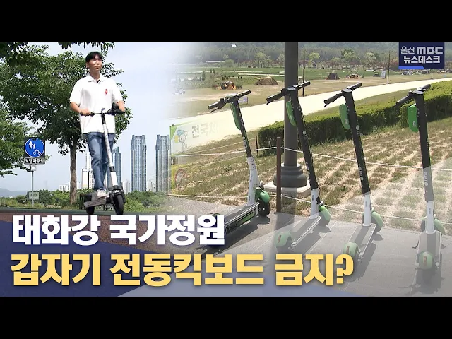 [앵커] 태화강 국가정원에서 전동휠이나 전동킥보드가 다니는 모습 쉽게 볼 수 있었죠. 이용에 아무 제한이 없다 보니 이용객도 늘고 자연스레 대여업체도 늘어났는데요. 그동안 손 놓고 있던 울산시가 갑자기 모든 전동장치 이용을 금지하고 나섰습니다. 이돈욱 기자입니다.[리포트] 태화강 국가정원. 전동휠이나 킥보드를...