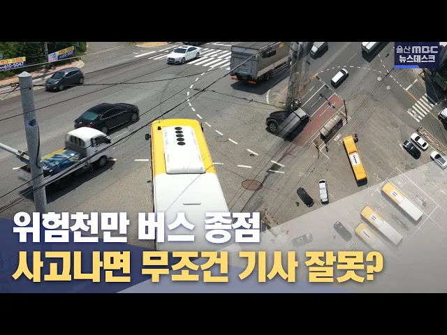 [앵커] 교통사고 유발 위험성이 높은데다 교통사고가 날 경우 무조건 버스기사가 책임을 더 많이 져야 하는 시내버스 종점이 있습니다. 지리적인 위치와 도로 구조상 교통사고가 났을 경우 버스기사에게 불리하기 때문인데 대안이 없다는 이유로 수십년 째 종점으로 활용되고 있습니다. 이용주 기자입니다.[리포트]울산 시...