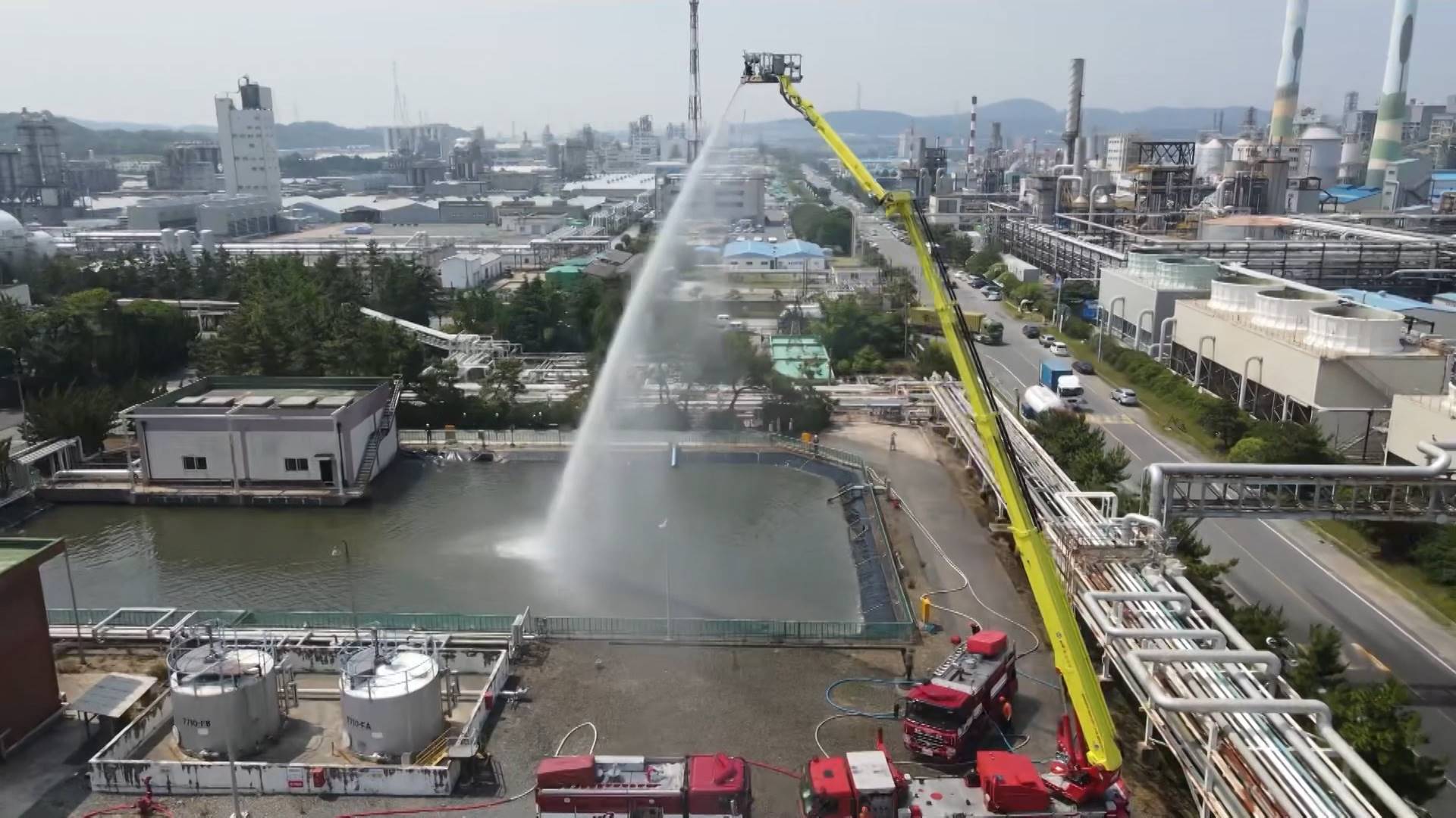 석유화학공장 화재 '중단 없는 소방용수' 공급 훈련