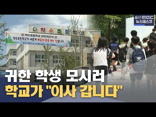 [앵커]저출산 시대에 학생 수가 줄어들면서 통합되거나 문을 닫는 학교들이 늘고 있는데요. 이제는 학교가 학생을 모시러 아예 이사까지 가는 시대가 됐습니다. 울산에서 올해만 학교 2곳이 학생들이 많은 지역으로 옮겨 다시 문을 열었습니다. 정인곤 기자 [리포트]학교 입구는 굳게 잠겨있고 운동장에는 고요한 적막만 흐...