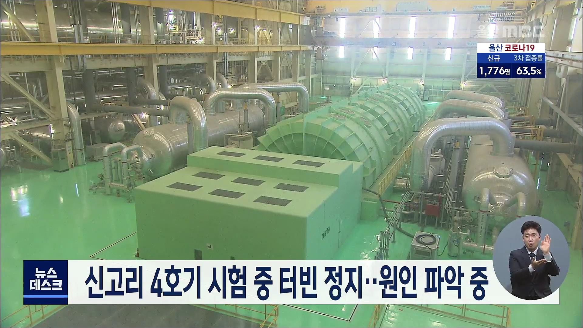 한국수력원자력 새울원자력본부는 오늘(4/26) 오후 1시 27분 신고리 4호기 터빈밸브 정기시험 중 터빈정지 신호가 발생해 터빈이 자동 정지됐다고 밝혔습니다. 새울본부는 원자로가 출력 약 50% 수준에서 안정적으로 유지돼 방사능 누출 등의 영향은 없다며 정확한 터빈 정지 원인을 파악하고 있다고 설명했습니다.