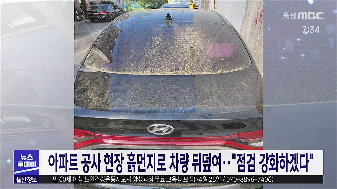 아파트 공사 현장 흙먼지로 차량 뒤덮혀.. "점검 강화하겠다"