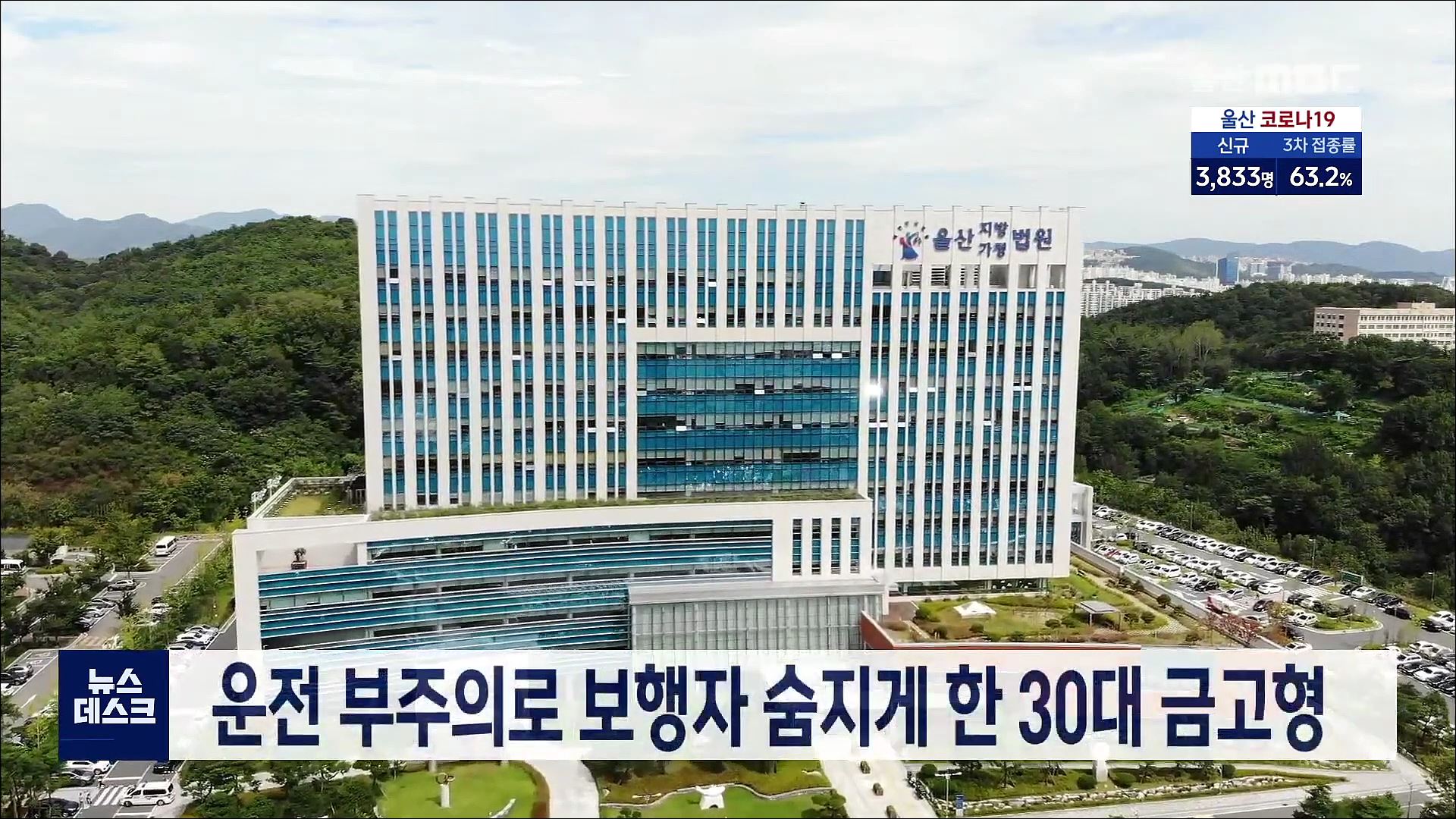 울산지법 형사6단독은 차로 80대 보행자를 치어 숨지게 한 혐의로 재판에 넘겨진 30대 A씨에게 금고 6개월에 집행유예 1년을 선고했다고 밝혔습니다. A씨는 지난해 8월 경남 양산시 한 도로에서 좌회전을 하다 길을 건너던 80대 여성을 치어 숨지게 한 혐의로 기소됐습니다.