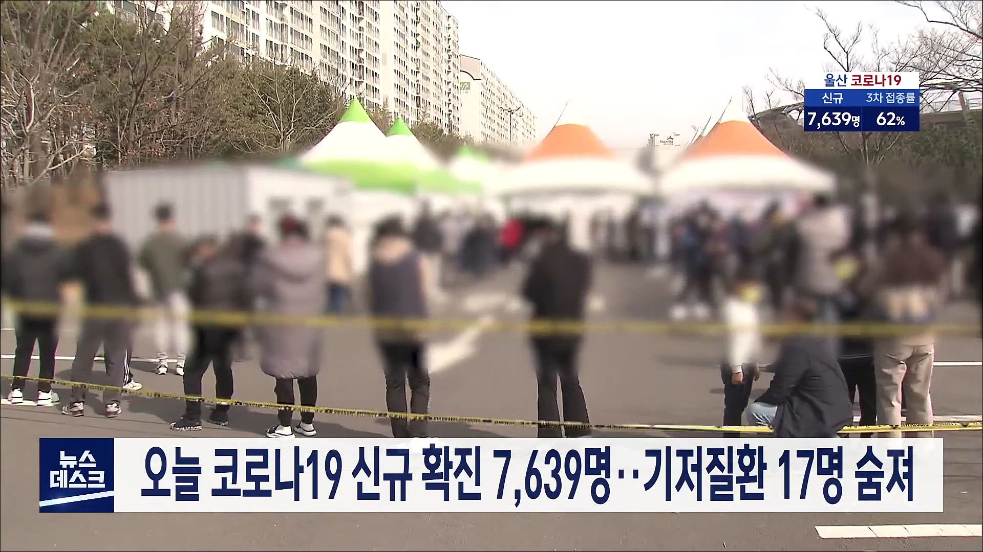 오늘 코로나19 신규 확진 7,639명..기저질환 17명 숨져