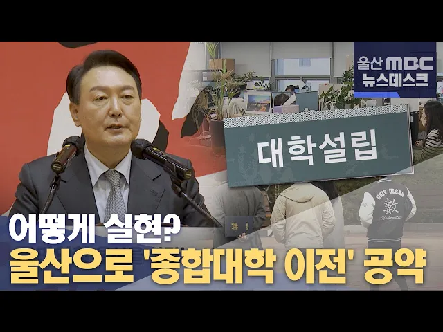앵커 │ 울산 인구가 해마다 만 명씩 감소하고 있고 이 가운데 80%가 2030세대입니다. 이들은 진학과 취업을 이유로 울산을 떠나고 있는데 윤석열 대통령 당선인이 울산으로 종합대학을 이전해 인구 유출을 막겠다는 공약을 내놨습니다. 어떻게 실현 가능한지 홍상순 기자가 취재했습니다. 리포트 │ 윤석열 당선인이 국민의...