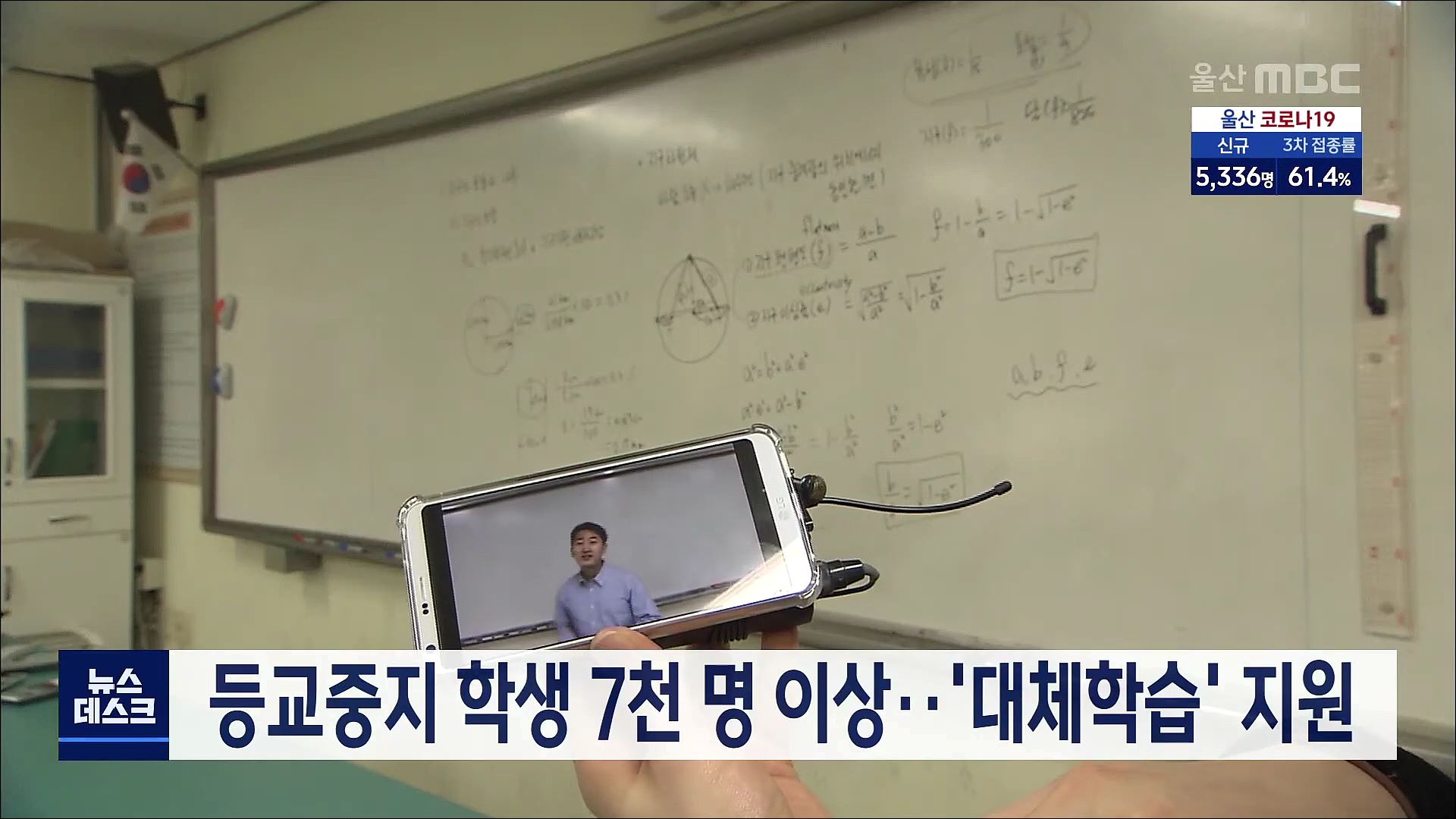 코로나19 여파로 등교하지 못하는 학생들의 학습 결손을 막기 위해 대체학습이 지원됩니다. 울산시교육청은 각 학교와 학생 여건에 따라 실시간 쌍방향 수업, 온라인 콘텐츠나 학습꾸러미 등을 제공하고 있다고 밝혔습니다. 최근 일주일 사이 학생 확진자는 7천명을 넘고 있어 등교중지자는 이보다 더 많을 것으로 추정됩니...
