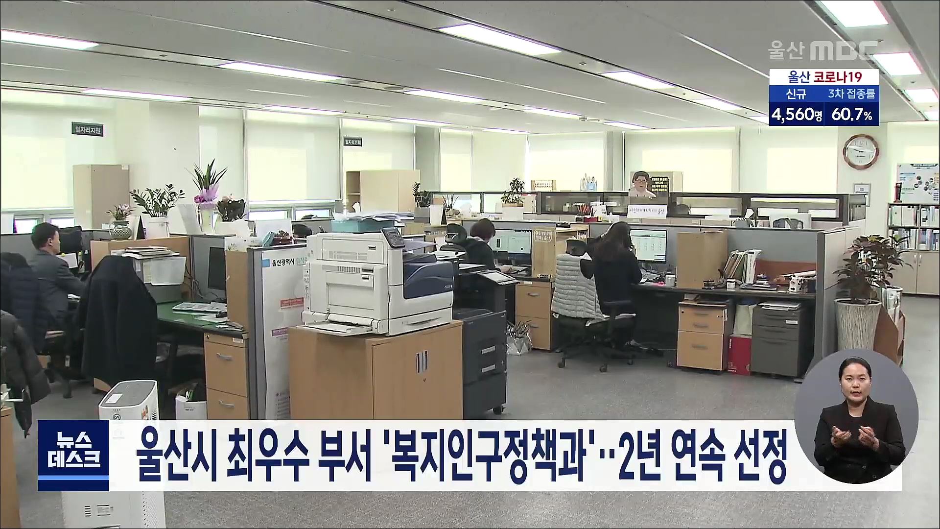 울산시 최우수 부서 '복지인구정책과'..2년 연속 선정