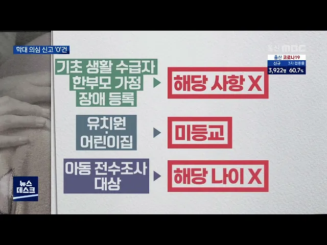 앵커| 지난 3일 남구 달동의 한 원룸에서 31개월 된 아이가 방치로 인한 아동학대로 숨진 소식 전해드렸는데요. 아이가 숨질 때 까지 아동학대 의심신고는 단 한건도 없었던 것으로 확인됐습니다. 정인곤 기자.리포트| 골목길로 구급차가 급하게 들어서고 구급대원들이 건물로 향합니다. 얼마 뒤 31개월 된 아이를 들것에...