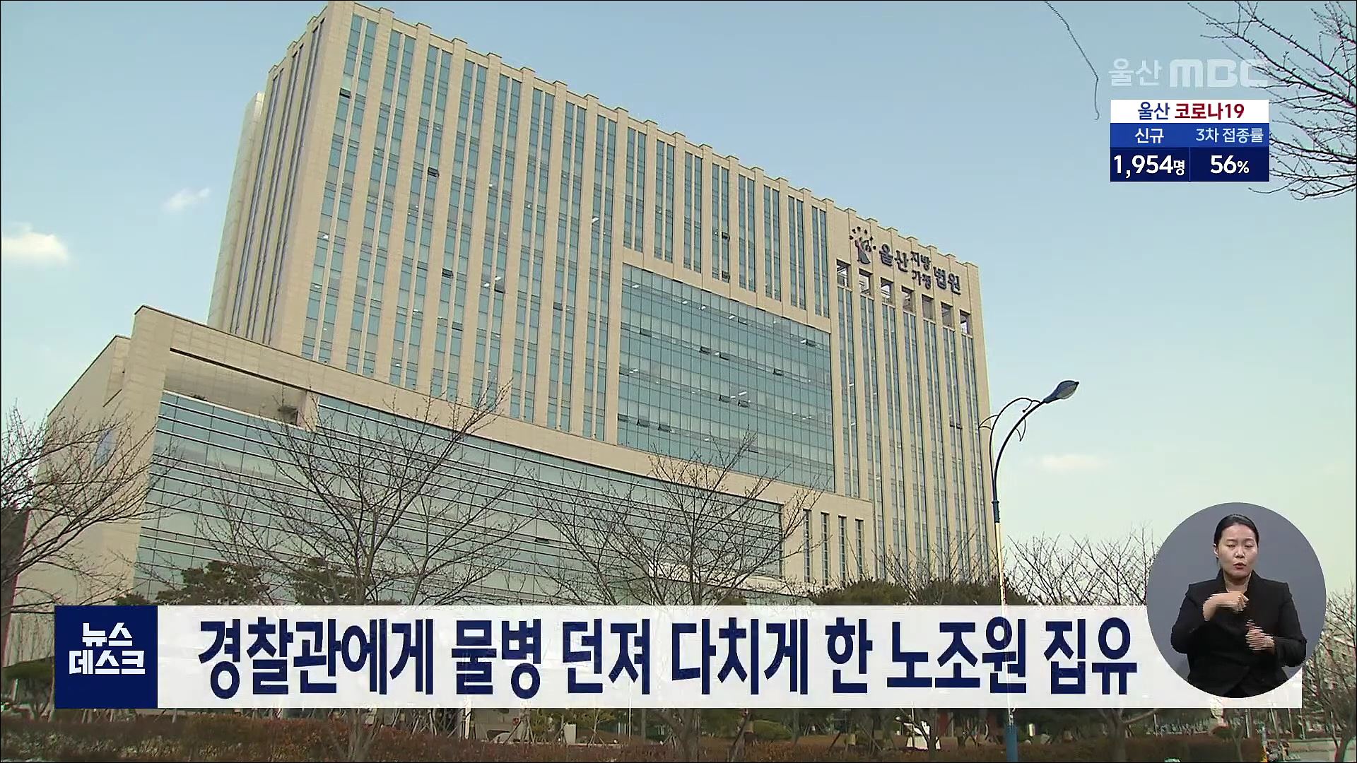 울산지법 형사12부는 경찰관에게 물병을 던져 다치게 한 50대 조합원 A씨에게 징년 6개월에 집행유예 3년을 선고했습니다. 민주노총 전국플랜트건설노조 울산지부 조합원인 A씨는 지난해 5월 울산 남구의 한 회사 앞에서 북항 터미널 조합원 채용 문제를 두고 집회를 하던 중 경찰관에게 물이 가득 찬 생수병을 집어던져 코...