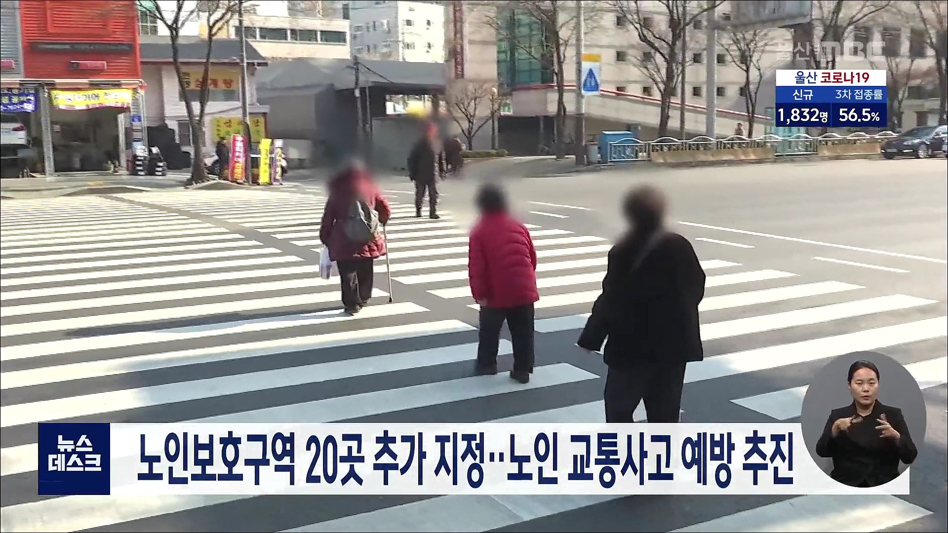 노인 교통사고 예방을 위한 노인보호구역이 기존 80곳에서 20곳 더 늘어납니다. 울산시는 노인복지시설과 공원, 생활체육시설 등을 노인보호구역으로 지정하고, 교통사고 예방을 위한 개선 공사를 벌일 예정입니다. 노인보호구역에서는 차량 통행속도가 시속 30km 미만으로 제한되고 주정차도 금지됩니다.//