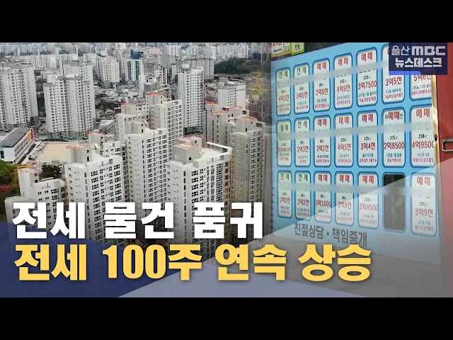 울산지역 아파트 전세가격이 100주 연속 상승했습니다.한국부동산원에 따르면 12월 첫째 주 울산 아파트 전세가격이 0.12% 상승하며, 지난 2023년 12월 넷째 주 이후 100주째 상승세가 이어졌습니다.특히 올해 전세가격 누적 상승률이 매매가격보다 2배 이상 높은 3.09%를 기록하며 전세가율이 70% 웃돌고 있는 것으로 나타...