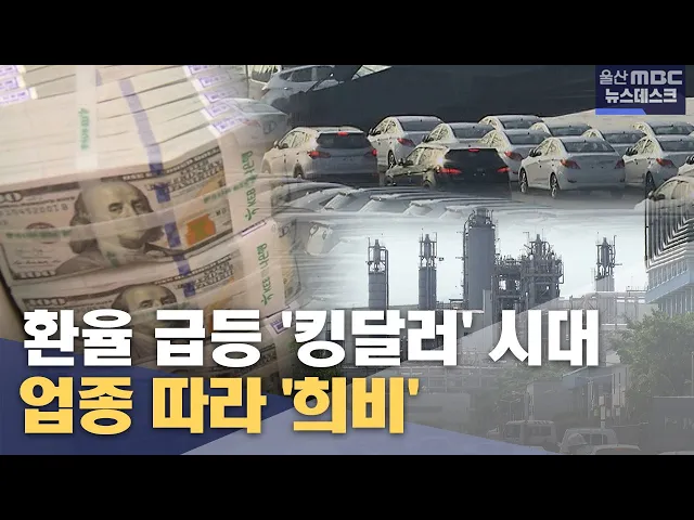 [앵커]최근 원 달러 환율이 1400원을 오르내리는 등 달러 강세가 이어지면서 업종에 따라 희비가 엇갈리고 있습니다.수출 비중이 높은 자동차와 조선은 반사 이익을 기대하고 있지만, 원자재 수입 비중이 높은 석유화학과 이차전지는 잔뜩 긴장하고 있습니다. 이상욱 기자가 보도합니다. [리포트]올 초 1천300원대 초반에 ...
