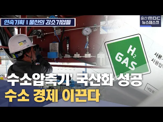 [앵커]울산의 한 중소기업이 아이오닉 유체를 이용해 수소를 압축하는 신개념 수소압축기를 국내 최초로 개발해 발표회를 열었습니다.이 수소압축기는 수소 압축 용량을 대폭 늘리면서도 고장이 작고 소음은 줄여 수소경제 시대를 앞당기는 촉매제가 될 것으로 보입니다. 이상욱 기자가 보도합니다. [리포트]이온성 액체가 ...