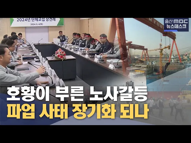 [앵 커] HD 현대중공업 노사가 올해도 추석 전 타결에 실패했습니다. 10여 년 만의 조선업 호황이 오히려 노동조합의 기대치를 높이고 있기 때문인데요. 다음 달에는 국내 조선업계 노동조합이 공동 총파업도 예고하고 나섰습니다. 이다은 기자입니다. [리포트] 추석 전 임금과 단체협상 타결에 실패한 HD현대중공업 노동조...
