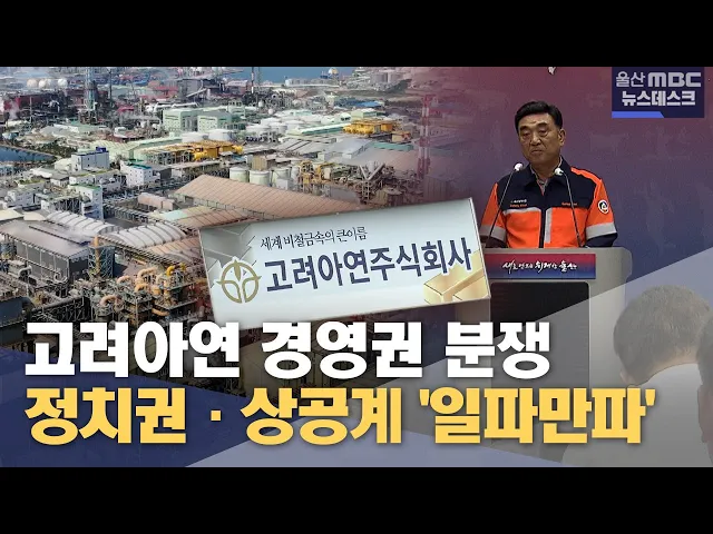 ◀ 앵 커 ▶ 추석 연휴 기간 울산 지역의 뜨거운 감자로 떠오른 고려아연 경영권 분쟁 사태가 점점 확대되고 있습니다. 정치권에 이어 상공계, 노동조합까지 일제히 적대적 인수합병을 막아야 한다고 나서고 있는데요. 반대로 지분 매수에 나선 MBK 파트너스 측은 고려아연의 무분별한 투자를 지적하며 우려를 일축하고 나섰...