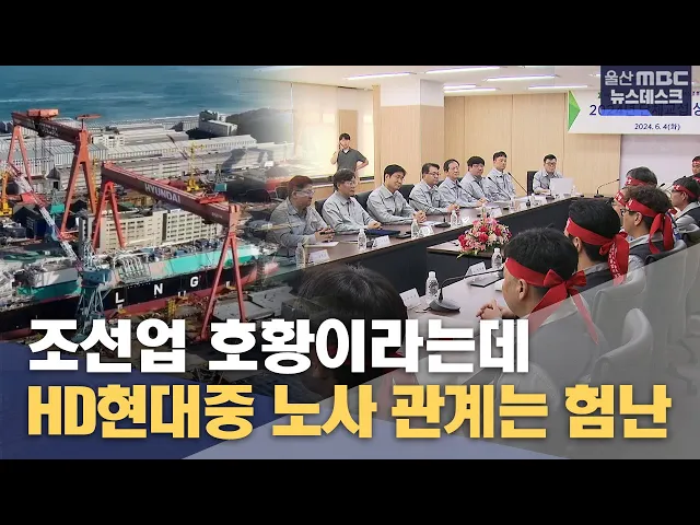 [앵커]조선업이 호황기에 접어들었다는데 노사 관계는 어느 때보다 험난해지고 있습니다.HD현대중공업 노조가 파업 시작도 전에 추가 파업부터 예고하고 나섰는데요. 회사의 실적을 바라보는 입장이 확연히 달라 임단협 교섭이 쉽지 않을 전망입니다. 유영재 기자 [리포트]현대중공업 도크마다 건조 선박이 빼곡하게 찼습니...