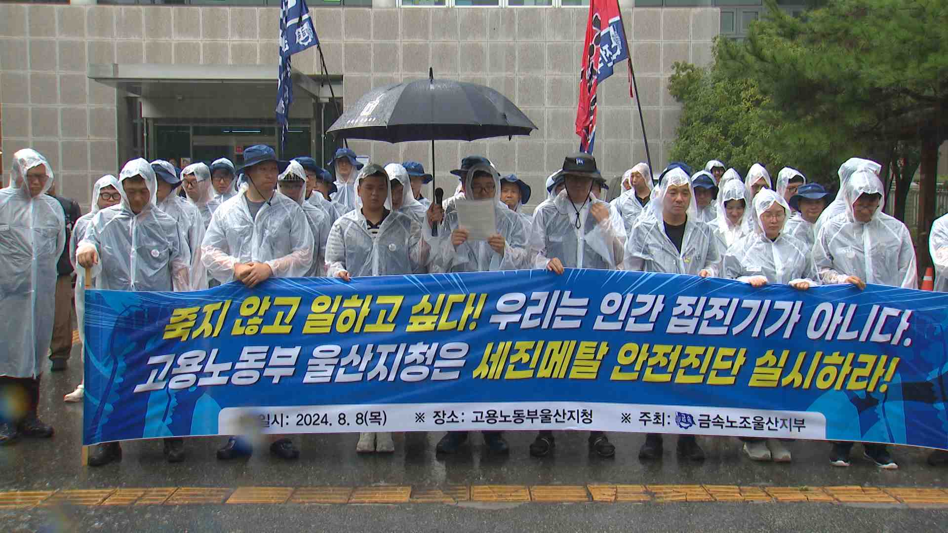 전국금속노조 울산지부는 오늘(8/8) 고용노동부 울산지청 앞에서 기자회견을 갖고 노동부는 세진메탈에 대한 안전진단을 실시하라고 촉구했습니다. 노조는 세진메탈의 공장 내부 작업장에서 집진기가 정상 작동하지 않아 시야가 확보되지 않는 가운데 지게차가 운행하고 있어 충돌 사고가 우려된다고 주장했습니다. 또, 공...