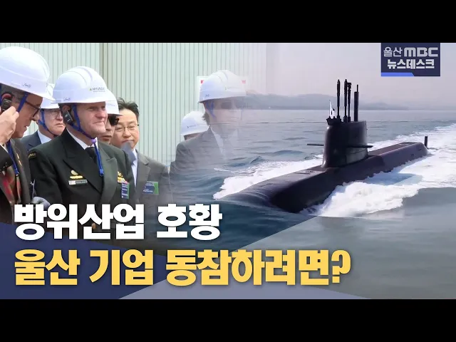 [앵 커]최근 국제 분쟁이 늘어나면서 세계 각국이 군비를 잇따라 증강하고 있습니다. 이에 따라 우리나라 방위산업도 수출이 급격하게 늘어나고 있는데요. 울산지역 기업들이 방위산업 호황에 동참하려면 무엇이 필요한지 알아봤습니다. 유희정 기자. [리포트] HD현대중공업이 만든 3천 톤급 잠수함인 신채호함 인수식이 열...