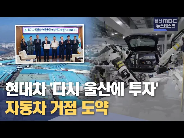 [앵커]울산에 전기자동차를 중심으로 한 현대자동차 그룹의 투자가 잇따르고 있습니다.한때 현대차가 해외 진출에 집중하면서 지역사회의 위기감이 높아졌었는데요. 이른바 현대차의 '리쇼어링'으로 울산이 다시 주목받고 있습니다. 이돈욱 기자입니다. [리포트]현대모비스가 900억 원을 투자해 울산에 새로운 부품공장을 ...
