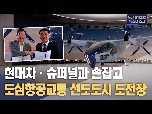 [앵커]미국 CES 현장을 찾은 울산 사절단이 하늘을 나는 자동차, UAM을 개발하는 슈퍼널, 현대자동차와 업무협약을 체결했습니다.울산시는 이번 협약을 바탕으로 미래 도심항공교통 실증 사업에 본격적으로 뛰어들어 새로운 성장동력으로 만들겠다는 계획입니다. 이용주 기자 [리포트]기체에 달린 8개의 로터가 일제히 수직...