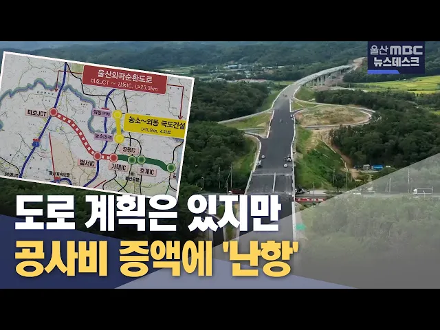 [앵 커]북구 농소동에서 강동동을 연결하는 도로가 사업 확정 5년이 되는 내년에 첫 삽을 뜰 전망입니다. 그렇지만 농소-강동 구간과 연결되는 외곽순환고속도로는 사업비 증가로 추진 속도가 더뎌지고 있습니다. 최지호 기자.[리포트]농소~강동 간 도로개설 사업이 국가균형발전 프로젝트에 선정된 건 지난 2019년입니다....