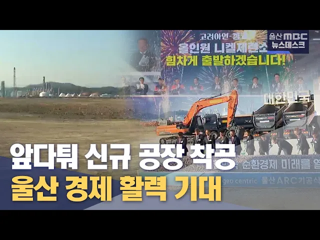 ◀ 앵 커 ▶울산지역의 신규 기업투자가 활발한 가운데 대형 공장 착공식이 잇따라 열렸습니다.고려아연은 2차 전지 핵심 소재인 니켈 생산공장을, sk지오센트릭은 세계 최초 폐플라스틱재활용 단지 첫 삽을 떴는데, 지역경제 유발효과가 클 것으로 기대됩니다.이상욱 기자가 보도합니다.◀ 리포트 ▶비철금속업계 선두주자인 ...