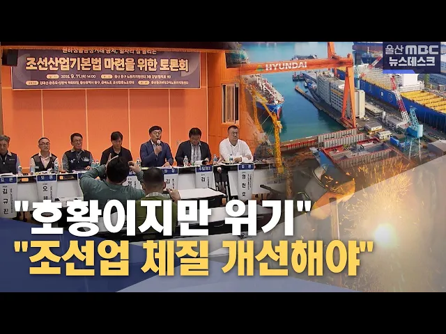 [앵 커] 조선업이 긴 불황의 터널을 지나 다시 최대 호황을 맞고 있지만, 반대로 가장 큰 위기에 직면했다는 목소리도 나오고 있습니다. 수십년 동안 구조적인 문제점들이 누적되면서 노동자들이 떠나고, 호황이 지역 경제 활성화로 이어지지 않는다는 지적인데요. 정치권과 노동계, 학계가 조선업의 체질을 개선해야 한다...