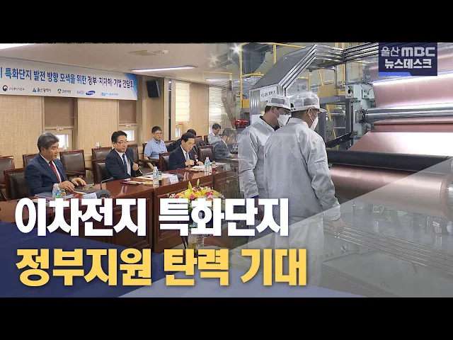 [앵커] 지난달 울산이 산업부로부터 첨단이차전지 특화단지로 지정되면서 울산시가 이차전지를 미래 먹거리로 육성한다는 계획을 세우고 있습니다. 이런 가운데 산업통상자원부가 울산의 생산 현장을 찾으면서 울산지역 이차전지 관련 기업 투자와 지원에 순풍을 달 수 있을지 주목됩니다. 이용주 기자입니다. [리포트]지난...