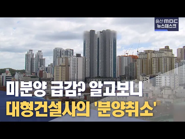 [앵커] 울산지역 미분양 물량이 한 달새 5백 가구 이상 감소해 얼어붙은 부동산 경기가 나아질 거라는 전망도 나오고 있는데요, 그런데 알고 보니 미분양이 줄어든 것이 아니라 지난해 울산에서 분양에 들어갔던 대형 건설사가 분양을 아예 취소하면서 생긴 일이었습니다. 이상욱 기자가 보도합니다. [리포트] 지난 6월 말 ...