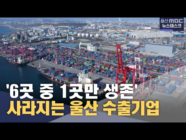 [ 앵 커 ]지난해 울산은 경기도와 충남에 이어 3번째로 수출을 많이 한 도시였는데요, 정작 성장 기여도는 6위로 밀려났습니다.수출시장에 진입한 기업은 1년만에 절반 이상이 퇴출됐고 5년이 지나면 6곳 가운데 1곳만 살아남은 것으로 조사됐습니다. 보도에 홍상순 기자입니다.[ 리포트 ]지난해 울산지역 수출 활동 기업은...