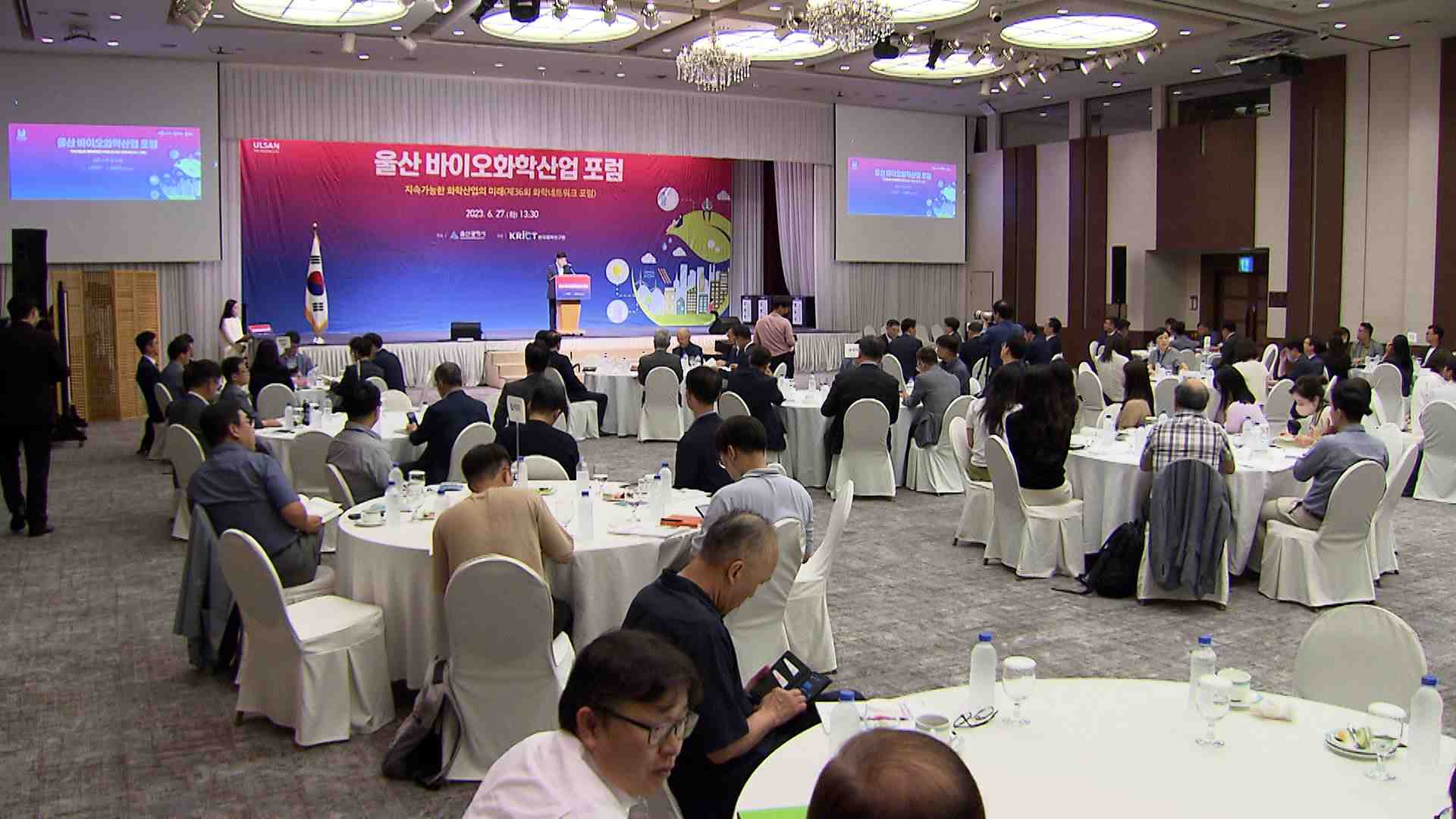 울산지역 바이오화학산업 산학연 전문가 100여명이 참석한 포럼이 오늘(6/27) 오후 롯데호텔에서 열렸습니다. 한국화학연구원이 주관하는 이번 포럼에서는 바이오화학산업 최신 기술과 동향을 공유하고, 화학산업에서 바이오화학산업으로의 전환을 위한 지원 방안을 논의했습니다. 울산시는 이번 포럼을 통해 실제 산업 현...