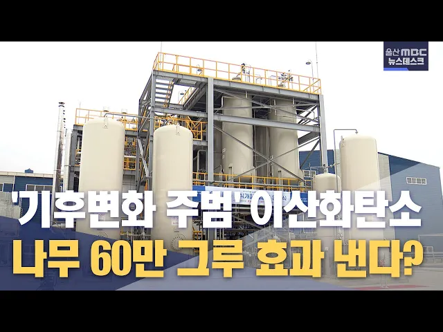 [앵커] 국내 연구진이 기후변화의 주범으로 꼽히는 이산화탄소를 석유화학 원료인 합성가스로 전환하는 플랜트를 구축하는 데 성공했습니다. 연간 이산화탄소 5천톤을 투입해 합성가스 8천톤을 생산하는데 나무 심기로 환산하면 60만 그루를 심는 효과가 있다고 합니다. 이용주 기자. [리포트] 플랜트 정면에 일산화탄소와 ...