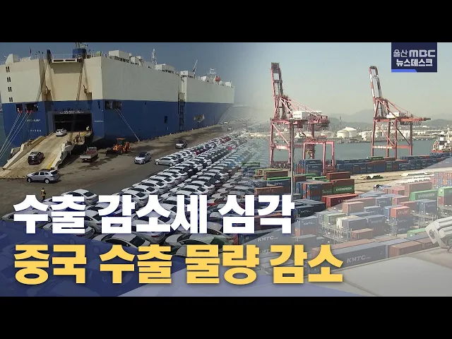 [앵커] 울산 수출이 중국 수출 물량 감소로 두 달 연속 감소세를 보이고 있습니다. 자동차를 중심으로 한 미국 수출이 역대 최고치를 기록한 반면 중국으로의 석유화학 수출이 급감했기 때문인데, 올해 수출 목표 달성에도 비상이 걸렸습니다. 이상욱 기자가 보도합니다. [리포트] 최근 자동차 수출 증가로 자동차 선적부두...