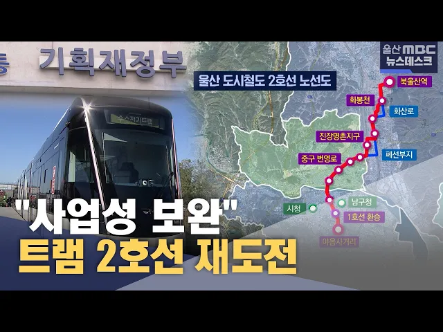 [앵커]울산시가 사업성이 부족하다는 이유로 한차례 무산됐던 도시철도 2호선 건설 사업에 다시 도전합니다. 노선을 단축하고 연계 노선을 강조해 국토부 심의를 통과했는데, 최종 기재부 문턱을 넘을 수 있을지가 관건입니다. 최지호 기자. [리포트]도시철도 2호선은 북울산역과 남구 야음사거리 사이에 2031년까지 14개의...