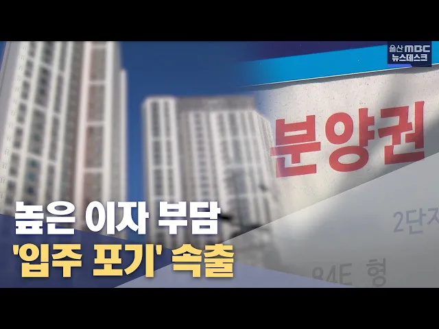[앵커] 가파른 금리인상 여파로 울산 분양 아파트 청약경쟁률이 사상 최저치로 떨어지고 있다는 소식 여러번 전해드렸는데요, 최근에는 이제 막 입주가 시작된 신규 아파트에서 입주를 포기하는 사례까지 나오고 있는데, 대출을 안고 집을 산 수분양자들이 높은 이자를 견디지 못해 분양권을 포기하는 것으로 보입니다. 이...