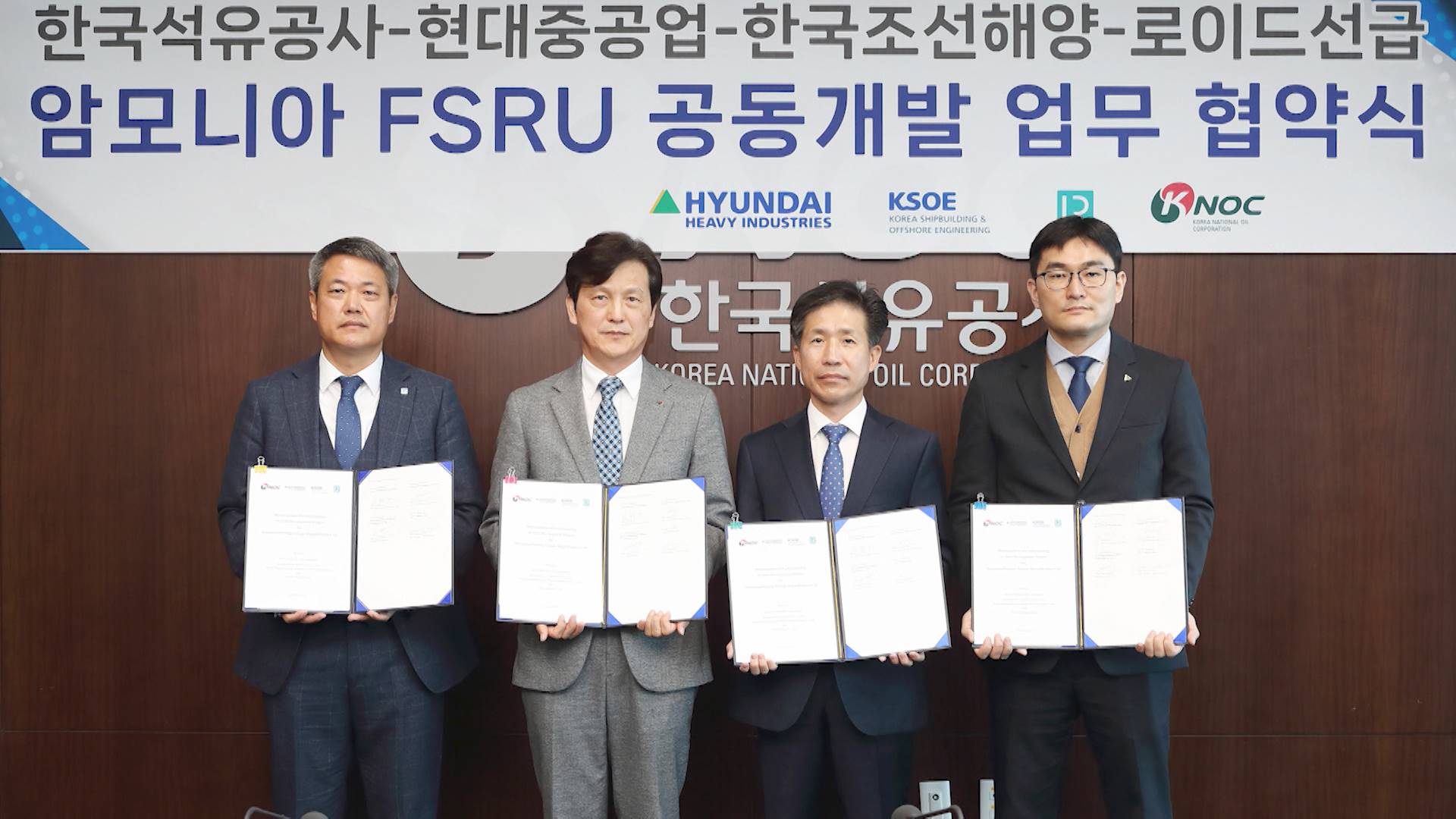 현대중공업그룹은 암모니아 저장·재기화 선박 개발을 위해 한국석유공사, 로이드 선급과 공공개발 협약을 체결했습니다. 암모니아 저장·재기화 선박은 생산지에서 운송된 액화 암모니아를 저장했다가 다시 기체화해서 육상 수요처에 공급하는 선박입니다. 현대중공업은 이 선박이 세계적으로 건조된 적이 없지만, 육상 터미...
