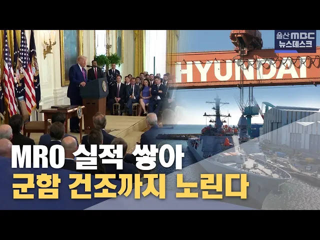 [앵커]HD현대중공업이 미 해군 함정 유지·보수·정비 사업을 처음 수주하는데 성공했습니다. 한미 관세 협상 타결 이후 이뤄낸 첫 성과여서 주목을 받고 있는데요. 장기적으로 MRO 사업 범위를 넓히고 미 군함 건조까지 따낼 수 있을지 주목됩니다. 홍상순 기자가 취재했습니다. [리포트]수익성이 높지 않다는 이유로 미 해...
