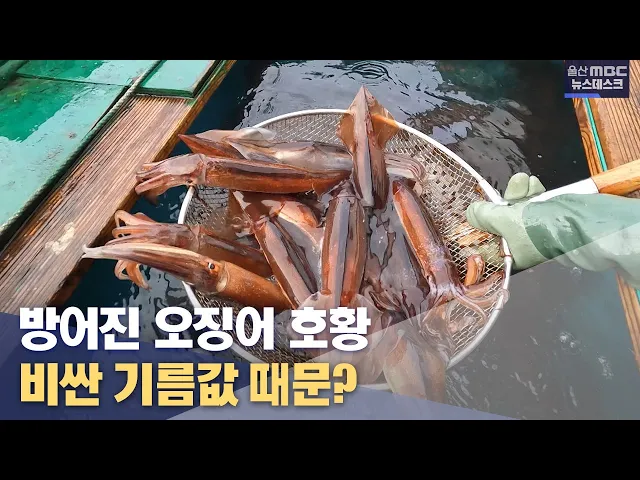 [앵커] 참가자미 생산기지로 유명세를 타 온 울산 방어진항에 최근 오징어 위판량이 급증했다고 합니다. 동해안 냉수대 현상과 기름값 폭등이라는 전혀 상관없어 보이는 두 가지 현상이 방어진항에 오징어 호황을 안겨줬다고 하는데 이용주 기자가 그 이유를 알아봤습니다. [리포트]새벽 시간, 울산 방어진항. 오징어잡이를...