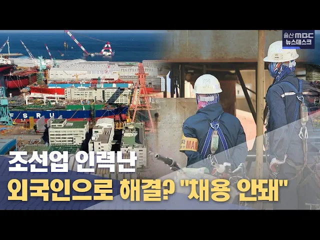 ◀앵커▶ 정부가 조선업 인력난을 해결할 대책으로 외국인 노동자 채용 제한을 풀어 4천 400명 이상을 공급하는 방안을 내놨습니다. 이 제도가 시행된 지 한 달이 지났는데, 정작 현장에 투입된 외국인 노동자는 전혀 없는 데다 근본적인 인력난 해소에도 도움이 안 된다는 지적마저 나오고 있습니다. 왜 그런지 유희정 기자...
